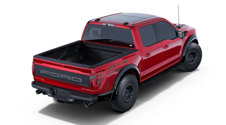 EQUIPMENT GROUP 802A RAPTOR 37 Dual Valve Shocks, Wheels: Raptor 37 Unique 17 Cast Aluminum, Bead lock capable, Carbon Fiber Interior Appliques, Modular Front Bumper, Tires: 37x12.5R17 BSW All-Terrain, GVWR: 7,400 lbs, TWIN PANEL MOONROOF, TOUGH BED SPRAY-IN BEDLINER, TRANSMISSION: ELECTRONIC 10-SPEED AUTOMATIC SelectShift w/paddle shifters and terrain management modes: normal, sport, tow-haul, slippery, rock crawl, off-road and baja (STD).