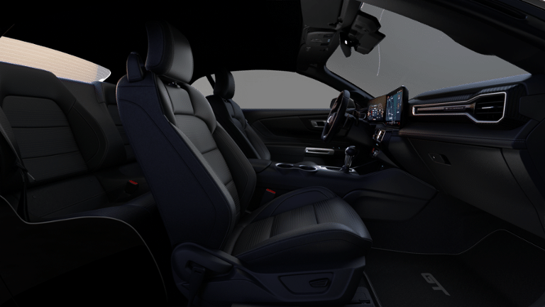 EQUIPMENT GROUP 401A HIGH PACKAGE Premier Trim w/Color Accent Group, accent stitched center console lid and shifter boot, 5-piece leather-wrapped steering wheel w/chrome bezel, unique color-accented door-trim and seat belt w/color accent stripes (black accent stripe/red background w/carmine red interior (53) or space gray accent stripe/black background w/black onyx and space gray interiors (5W/5H)), Instrument Panel w/Accent Stitch, Illuminated Door-Sill Scuff Plates, 3.55 Limited Slip Rear Axle, Ford Co-Pilot360 Assist+, Pre-Collision Assist w/Automatic Emergency Braking, Evasive Steering Assist, Connected Navigation, Navigation services require SYNC4 and FordPass Connect (optional on select vehicles), complimentary connect service and the FordPass app (see FordPass Terms for details), TRANSMISSION: 10-SPEED AUTOMATIC paddle shifters and remote rev, 3.15 Limited-Slip Rear-Axle, Leather-Wrapped Shift Knob, Remote Start System, ENGINE: 5.0L TI-VCT V8 stop/start system and Port Fueled Direct Injection (PFDI) (STD).