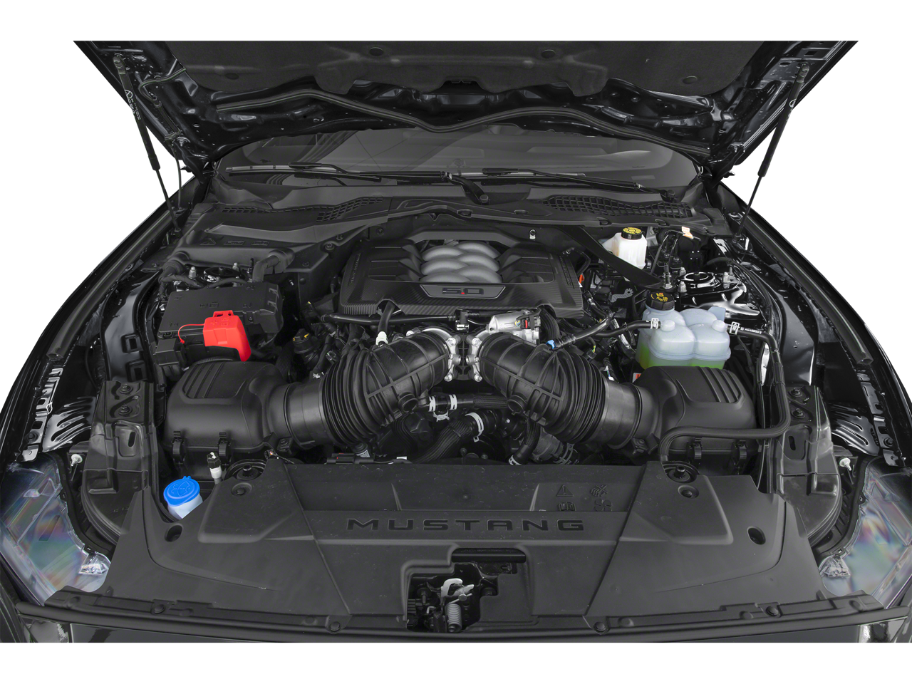 GT PERFORMANCE PACKAGE K-brace and accent stitched center console lid, Electric Hand-Operated Parking Brake (Drift Brake), Drift brake is intended for track use only, It should never be used on public roads, See Owners Manual for information on use, Heavy-Duty Front Springs, Unique Stability Control, EPAS and ABS tuning, Wheels: 19 x 9 Fr/19 x 9.5 Rr Carbonized, Gray-painted aluminum, Tires: 255/40R19 Fr & 275/40R19 Rr Summer-Only, Designed to optimize driving dynamics and provide superior performance on wet and dry roads, High performance summer tires wear faster than non-performance tires, Ford does not recommend using summer tires when temperatures drop to approximately 45 deg F (7 deg C) or below or in snow/ice conditions, Brembo Brake System w/Performance Linings, Black Painted, EQUIPMENT GROUP 401A HIGH PACKAGE Premier Trim w/Color Accent Group, accent stitched center console lid and shifter boot, 5-piece leather-wrapped steering wheel w/chrome bezel and unique color-accented door-trim, Instrument Panel w/Accent Stitch, 3.55 Limited Slip Rear Axle, Ford Co-Pilot360 Assist+, Driver-assist features are supplemental and do not replace the drivers attention, judgment, and need to control the vehicle, It does not replace safe driving, See Owners Manual for details and limitations, Pre-Collision Assist w/Automatic Emergency Braking, One-Year Connected Navigation, Lane-Keeping System w/Lane Keeping Aid, Lane Centering Assist, Lane Keeping Alert, Driver Alert, road departure warning and Blind Spot Assist, Magnesium Framed Panoramic Curved Display, Driver Seat Memory w/3, MAGNERIDE DAMPING SYSTEM, B&O SOUND SYSTEM BY BANG & OLUFSEN W/12 SPEAKERS subwoofer in trunk, TRANSMISSION: 10-SPEED AUTOMATIC paddle shifters and remote rev, 3.15 Limited-Slip Rear-Axle, Leather-Wrapped Shift Knob, Remote Start System, 1ST ROW CARPETED BLACK FLOOR MATS, ENGINE: 5.0L TI-VCT V8 stop/start system and Port Fueled Direct Injection (PFDI) (STD).
