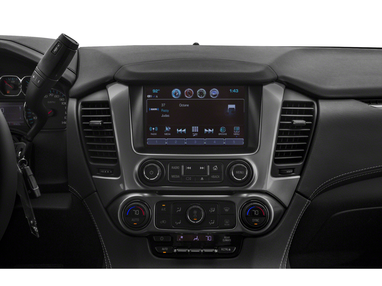 (CF5) power sunroof, (U42) rear seat DVD entertainment system and (IO6) 8 diagonal color touch-screen Navigation with Chevrolet Infotainment, with chrome inserts, with remote control, overhead display, Wi-Fi wireless projection capability, two 2-channel wireless digital headphones, auxiliary HDMI/MHL audio/video input and 2 USB ports, SEATS, SECOND ROW BUCKET, MANUAL, AM/FM stereo with seek-and-scan and digital clock, includes Bluetooth® streaming audio for music and select phones; voice-activated technology for radio and phone; and Shop with the ability to browse, select and install apps to your vehicle. You can customize your content with audio, weather and more; featuring Apple CarPlay® and Android Auto® capability for compatible phone; 5 USB ports and 1 auxiliary jack, includes aluminum block construction (355 hp [265 kW] @ 5600 rpm, 383 lb-ft of torque [518 N-m] @ 4100 rpm) (STD), with overdrive and tow/haul mode (STD).