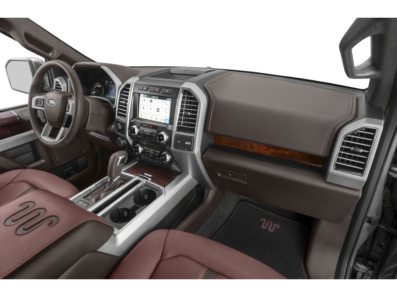 Tailgate Step w/Tailgate Lift Assist, Tires: P275/55R20 OWL Automatic Transmission, 275/65R18 OWL all-terrain spare tire, Power-Deployable Running Boards, Replaces step bar, Wheels: 20 Machined-Aluminum, light Caribou painted pockets and Caribou wheel ornament w/Caribou King Ranch logo, Inflatable Rear Safety Belts, Multi-Contour Driver & Passenger Seats, Active Motion, 2 chrome front tow hooks and tailgate applique, Chrome Door Handles w/Body-Color Strap, Front & Rear Chrome Bumpers, Bright Belt Moldings, Tires: P275/55R20 OWL Automatic Transmission, 275/65R18 OWL all-terrain spare tire, Wheels: 20 Chrome-Like PVD, Caribou wheel ornaments w/King Ranch logo, Chrome Skull Caps on Exterior Mirrors, max towing capability up to 13,200 lbs, and upgraded rear bumper, Pro Trailer Backup Assist, Integrated Trailer Brake Controller, Electronic Locking w/3.55 Axle Ratio, Extended Range 36 Gallon Fuel Tank, Engine Oil Cooler, Upgraded Front Stabilizer Bar, stop-and-go and pedestrian detection, 360 Camera w/Split-View Display, dynamic hitch assist, Active Park Assist, Off-Road Tuned Front Shock Absorbers, Skid Plates, fuel tank, transfer case and front differential, 4x4 FX4 Off-Road Bodyside Decal, Hill Descent Control, Electronic Locking w/3.31 Axle Ratio, Tray Style Floor Liner, auto start-stop technology, power-folding, PowerScope, turn signal, memory, auto-dimming feature (drivers side) and chrome skull caps, LED Sideview Mirror Spotlights, high-intensity LED security approach lamps, selectable drive modes: normal/tow-haul/snow-wet/EcoSelect/sport (STD).