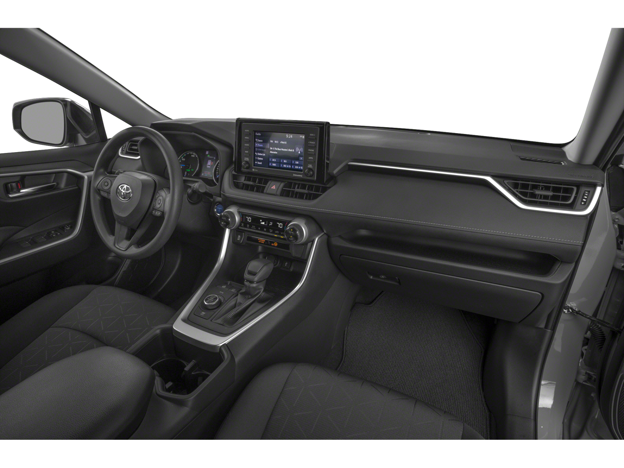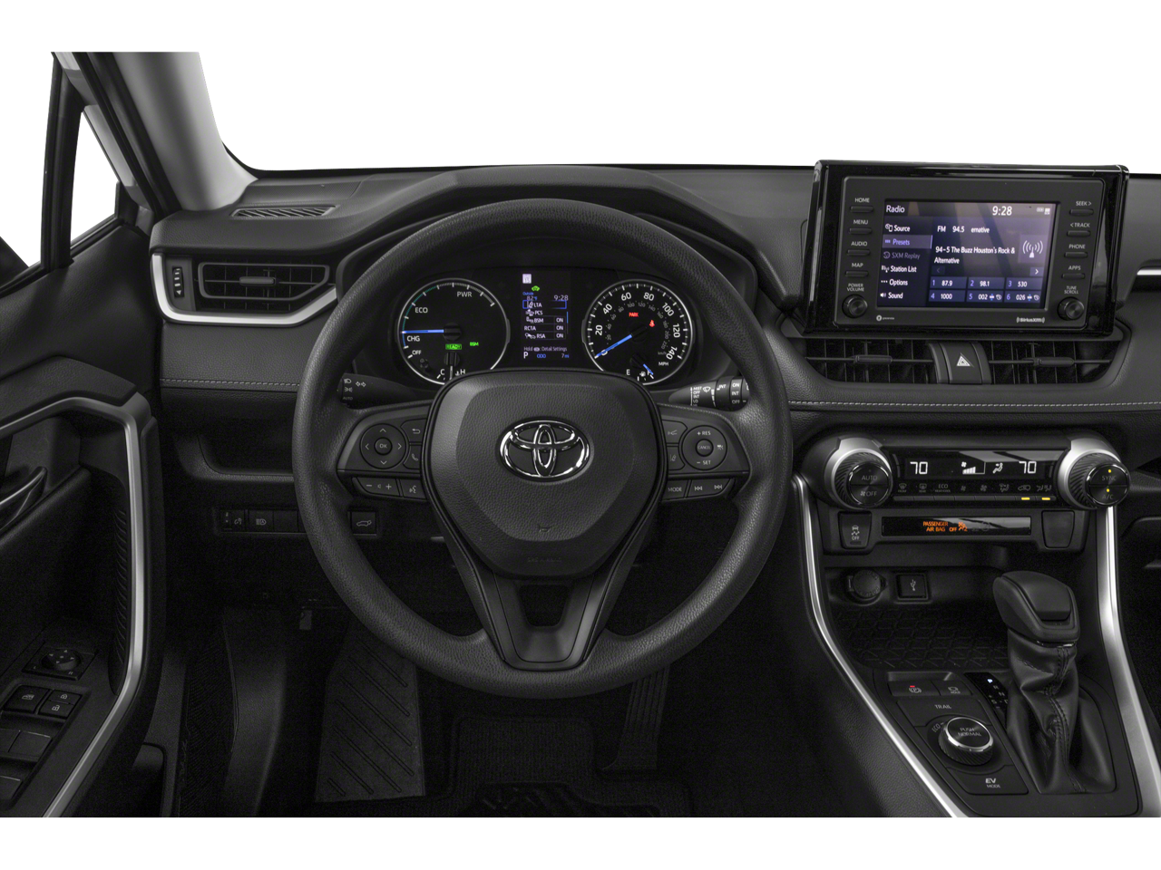 Back-Up Camera, Satellite Radio, iPod/MP3 Input, Onboard Communications System, Aluminum Wheels, Keyless Start, Dual Zone A/C, Brake Actuated Limited Slip Differential, Cross-Traffic Alert, Lane Keeping Assist. Rear Spoiler, MP3 Player, Privacy Glass, Keyless Entry. Toyota Hybrid XLE with Lunar Rock exterior and BLACK interior features a 4 Cylinder Engine with 219 HP at 5700 RPM*.